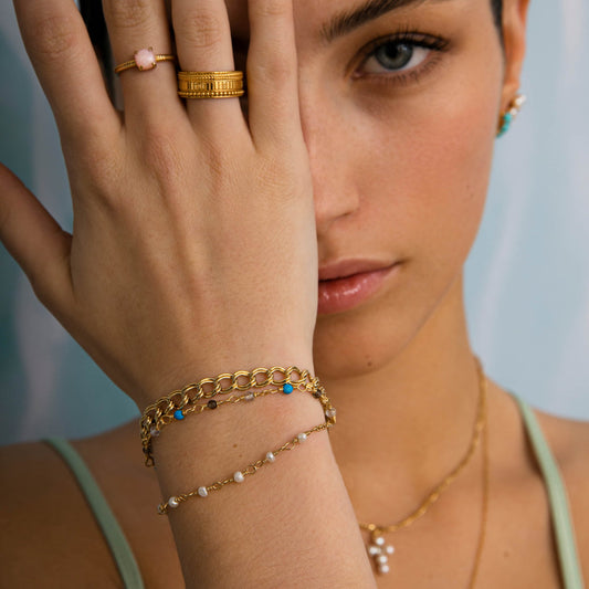 Saga bracelet(ターコイズ/スモーキークォーツ/ラブラドライト):ブレスレット